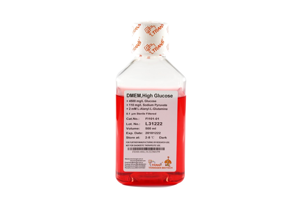 O DMEM contém glicose elevada com vermelho de fenol, bicarbonato de sódio, piruvato de sódio, L-alanil-L-glutamina e HEPES. Em comparação com a L-glutamina, a L-alanil-L-glutamina é mais estável em soluções e reduz o acúmulo de amônia tóxica. Isso o torna um bom substituto para a L-glutamina.