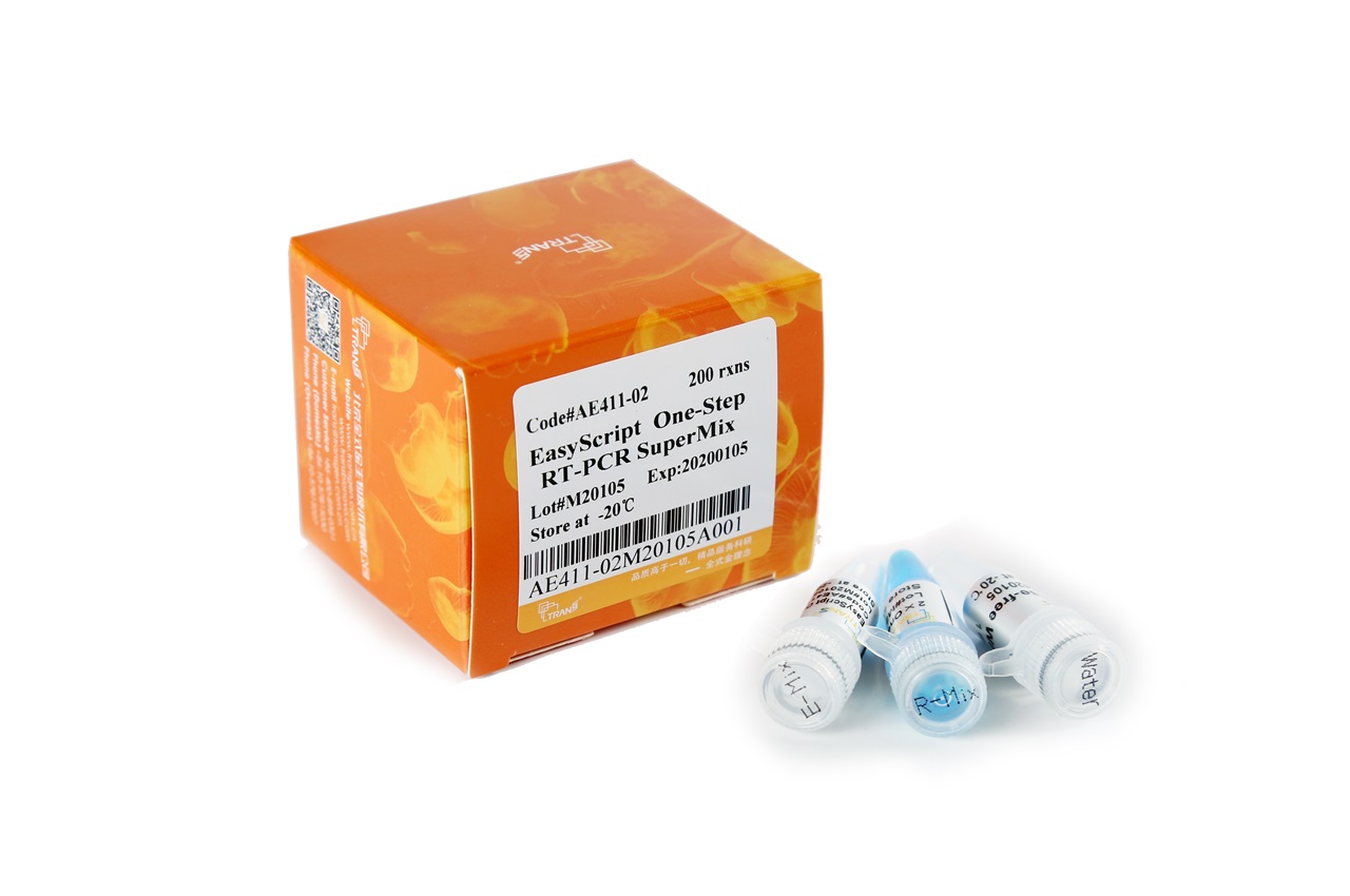 A RT-PCR em uma etapa combina a síntese da primeira fita de cDNA com a PCR no mesmo tubo para simplificar a preparação da reação e reduzir a possibilidade de contaminação. Somente primers específicos para cada gene podem ser usados para a RT-PCR em uma etapa. O kit utiliza EasyScript® RT e TransTaq® HiFi DNA Polymerase.