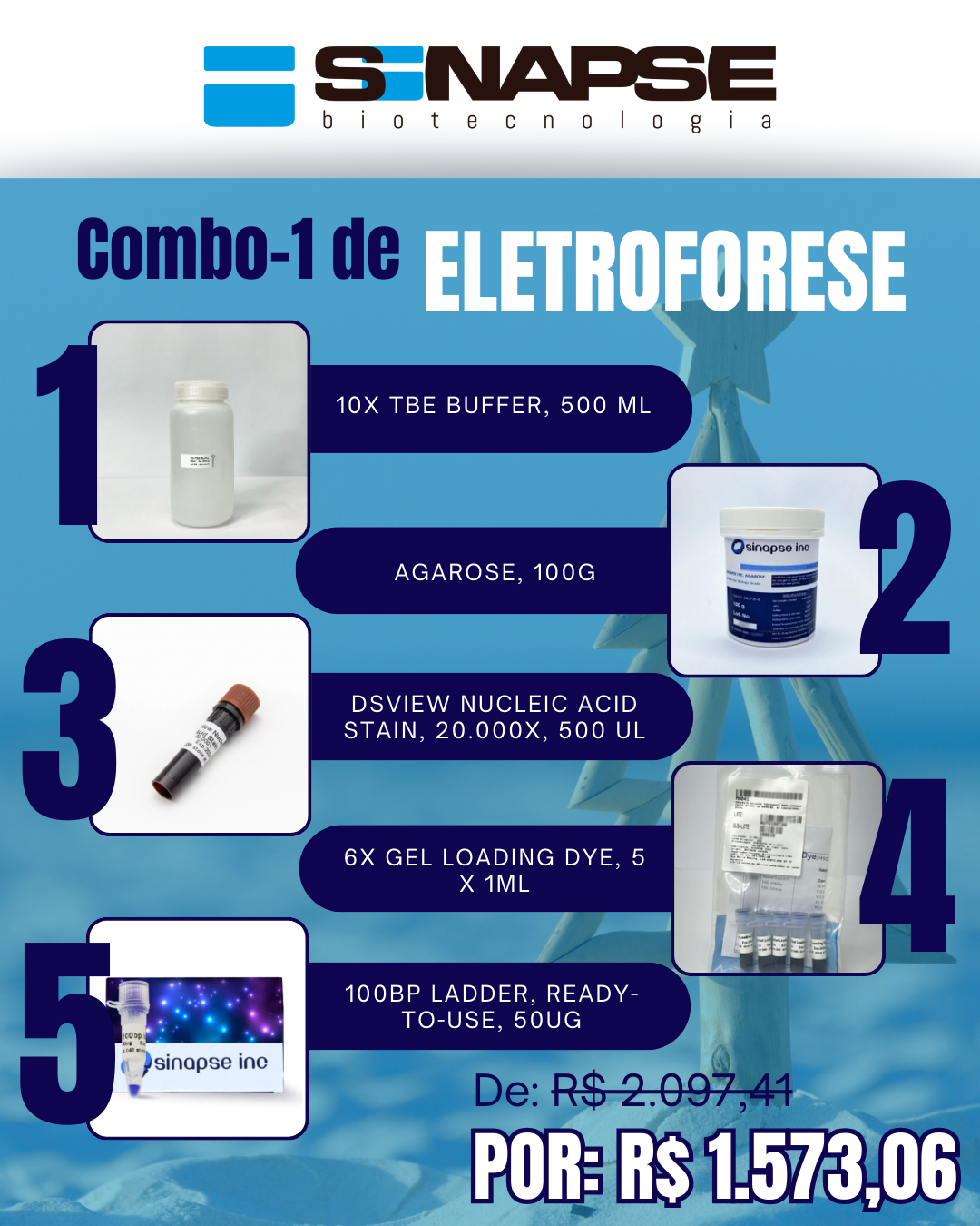 10X TBE BUFFER, 500 ML (M9031) + AGAROSE, 100G (S1201) + DSVIEW NUCLEIC ACID STAIN, 20.000X, 500 UL (M7012) + 6X GEL LOADING DYE, 5 X 1ML (M9041) + 100BP LADDER, READY-TO-USE, 50UG (M1061)