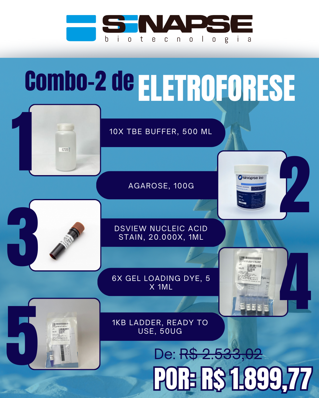 10X TBE BUFFER, 500 ML (M9031) + AGAROSE, 100G (S1201) + DSVIEW NUCLEIC ACID STAIN, 20.000X, 1ML (M7011) + 6X GEL LOADING DYE, 5 X 1ML (M9041) + 100BP LADDER, READY-TO-USE, 50UG (M1061)