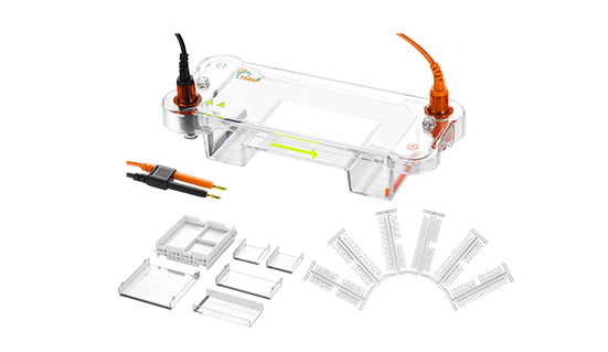 • Bandejas de gel resistentes a altas temperaturas, sem deformação a 100°C; não há necessidade de secar a agarose antes da moldagem.